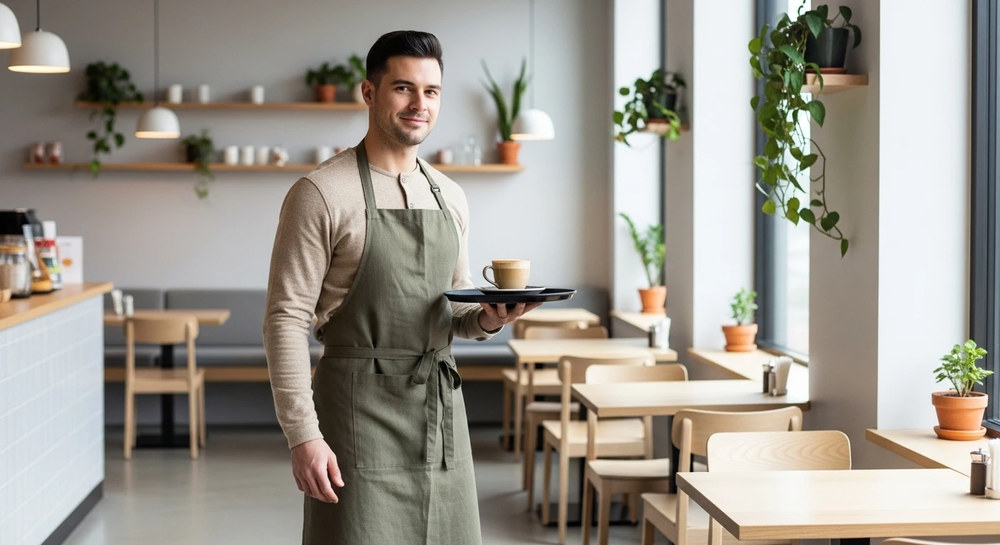 Так, лаконічний фартух — один із ключових трендів. Він може бути базовим елементом уніформи для залу та кухні. Багато закладів вирішують спочатку купити фартух у новому дизайні, щоб протестувати оновлений стиль без значних витрат.