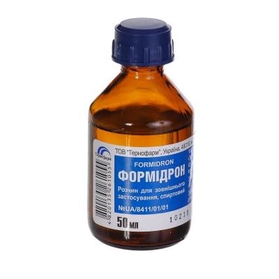 Формідрон доступний у флаконах по 50 мл або 100 мл, скляних чи полімерних. Деякі варіанти оснащені механічним розпилювачем, що робить його схожим на спрей і полегшує нанесення. Зберігати препарат слід у прохолодному місці, подалі від дітей, термін придатності становить до 4 років.
