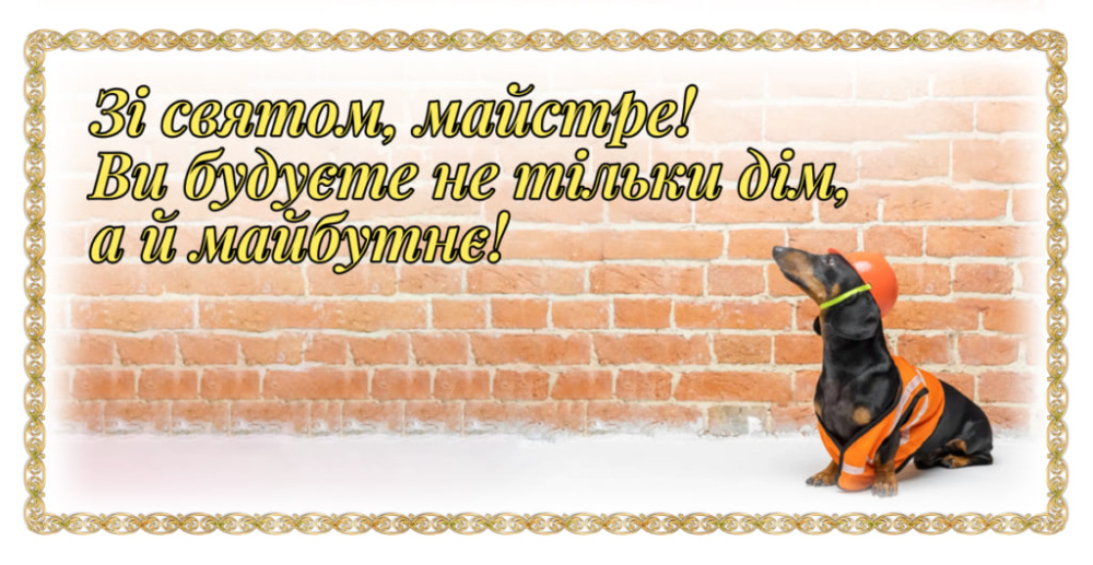Зі святом! Твоя праця — це те, що забезпечує основу для всього: міцні стіни, надійні дахи, комфорт для людей. Бажаю, щоб твоя кар’єра була такою ж сильною і стабільною, як ті будівлі, які ти створюєш. Нехай завжди вистачає сил для нових проєктів, а вдома чекає затишок та тепло.